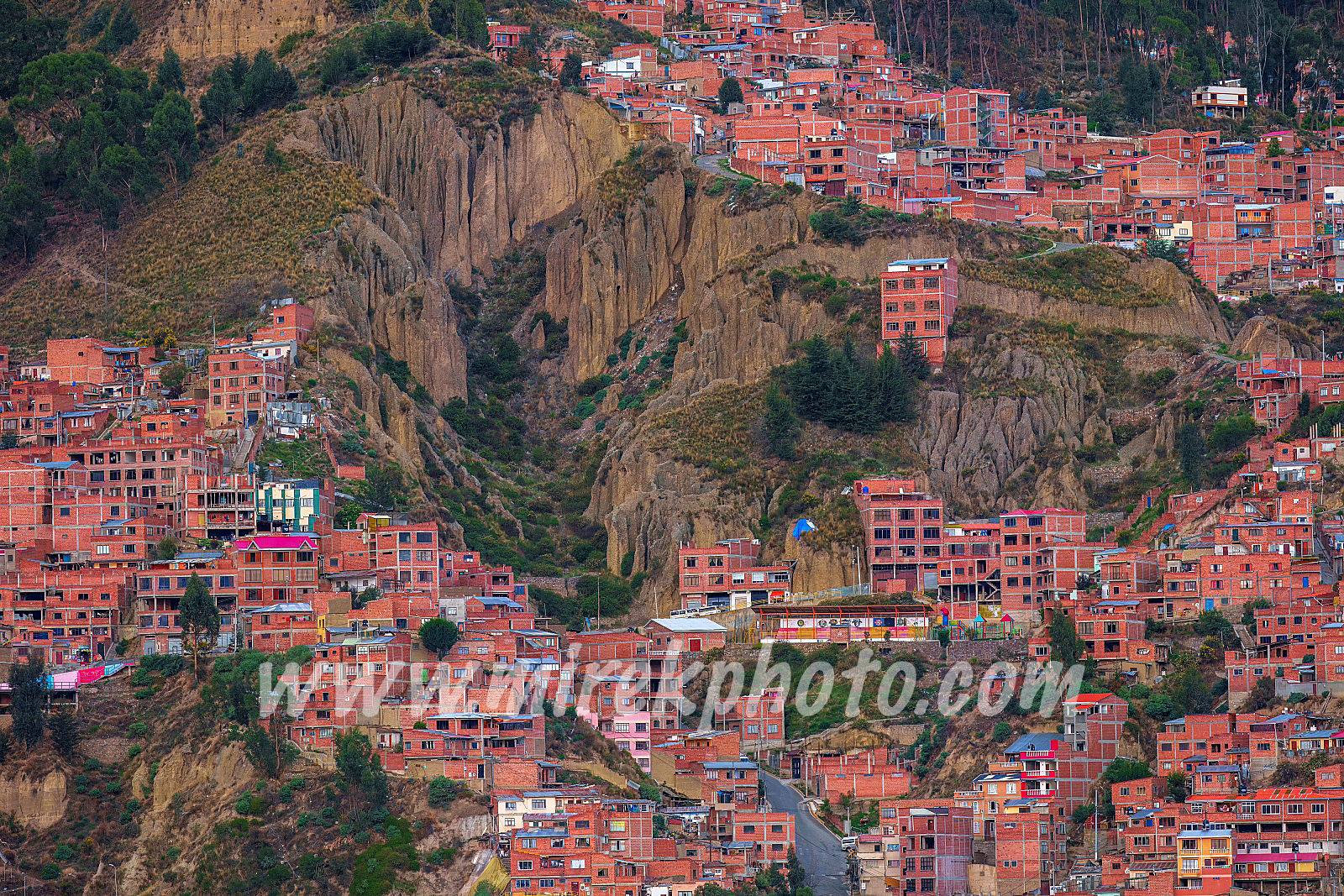 Město se nachází v nadmořské výšce kolem 3 650 metrů a je obklopeno vysokými horami Altiplana, včetně impozantní hory Illimani (6 438 m). Rozprostírá se na strmých svazích údolí, což vede k velmi neobvyklé a vizuálně ohromující architektuře. Chudší čtvrti se nacházejí na svazích a výše položených místech, zatímco bohatší čtvrti jsou v nižších, teplejších částech údolí. Kvůli strmému terénu se La Paz spoléhá na unikátní a rozsáhlý systém lanovek zvaný "Mi Teleférico". Je to největší městská síť lanovek na světě a stala se nejen klíčovým dopravním prostředkem, ale i ikonickou turistickou atrakcí.